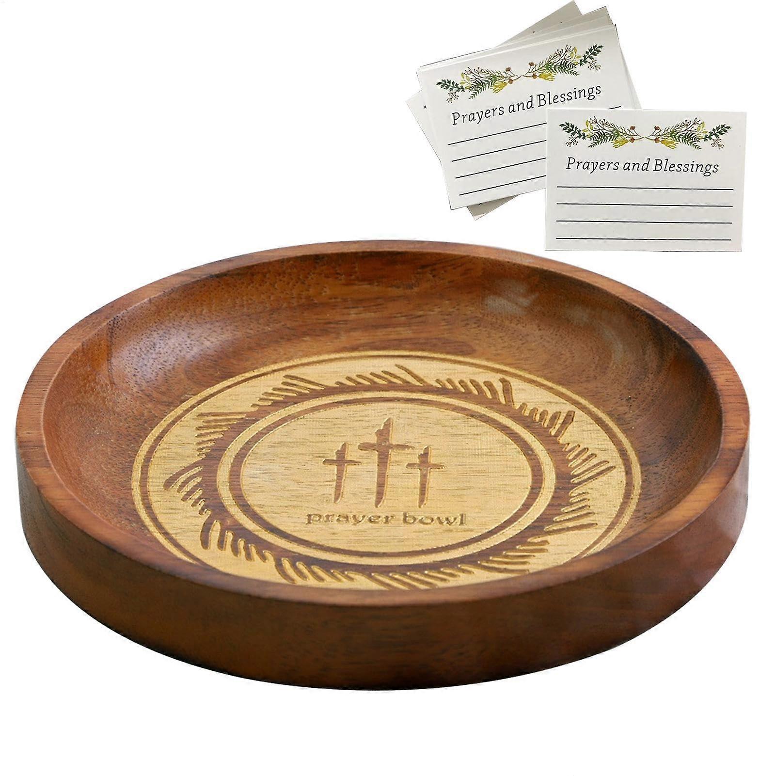Wooden Prayer Bowl with 24 Cards, HandCarved Christian Blessing Bowl for Home Decor and Gifts