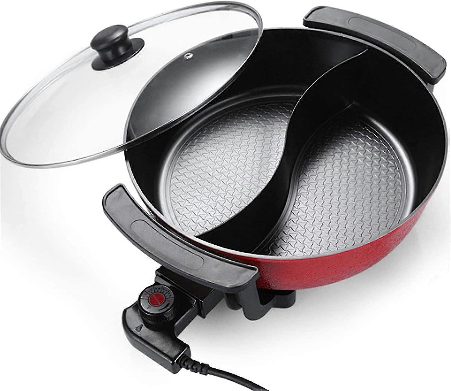 Electric Dual Hot Pot with Divider, Stainless Steel, Glass Lid, Dual Taste, Quick Heat, Easy Clean