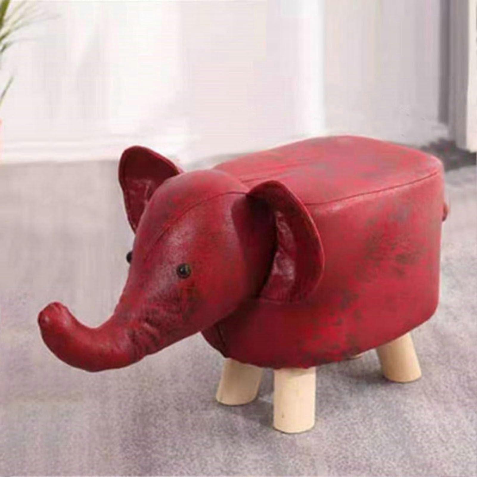 Animal Footstool with Wooden Legs, Adorable Cushioned Kids Ottoman Stool for Bedroom and Living Room Decor (Red)