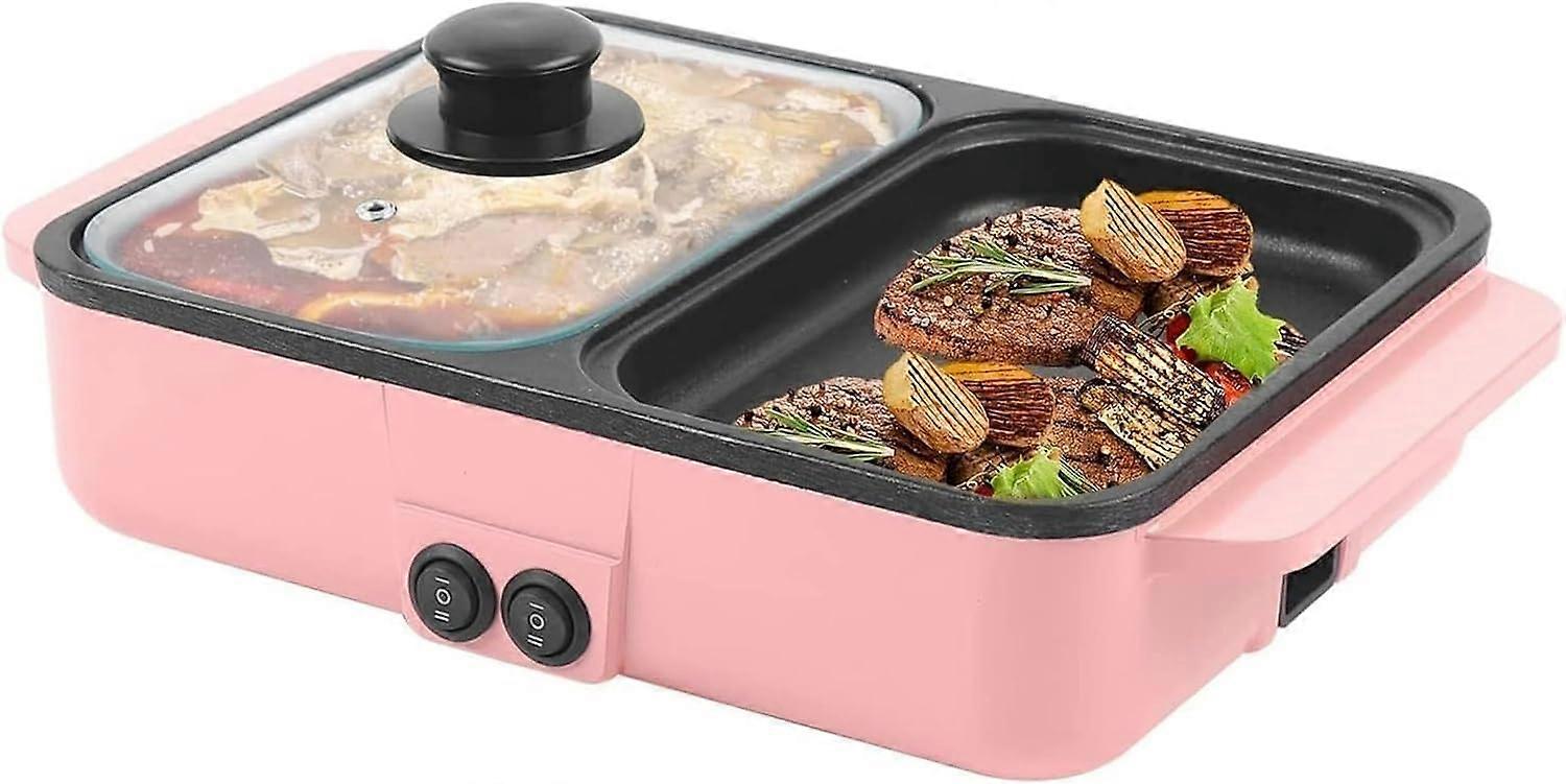 2in1 Electric Hot Pot Grill with Independent Temperature Control, Smokeless Indoor BBQ Cooking