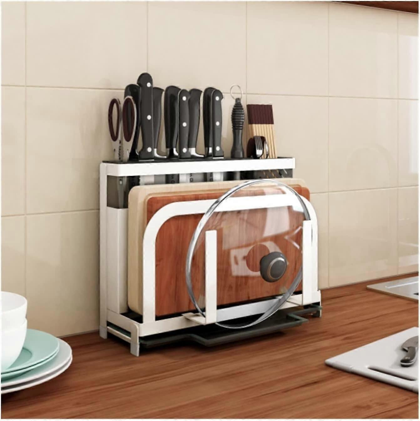 Stainless Steel Knife Block with Chopping Board Holder and Shielded Guard, White 33.2x11.4x25cm