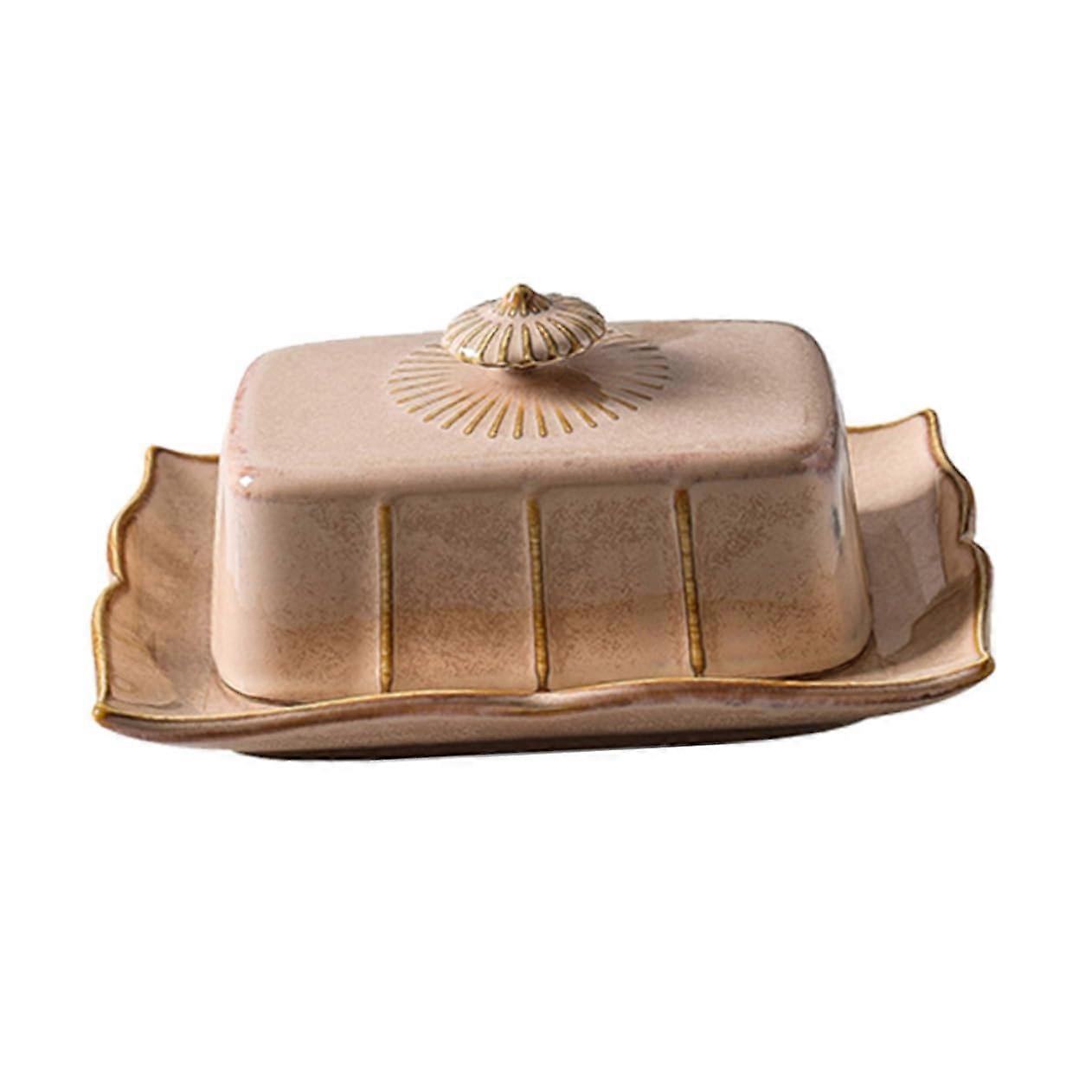 Beautiful Trendy Butter Dish Designed with exquisite craftsmanship and delicate decorative details, this butter dish adds style and charm to any kitchen or dining table. Trendy yet practical, it serves as both a functional food holder and an attractive serving piece for everyday use or special occasions. Ceramic Dessert Dish with Lid Equipped with a matching, creatively designed lid that helps keep butter or desserts safe, fresh, and flavorful for extended periods. Ideal for serving butter, small cakes, pastries, or other treats while preserving taste and hygiene. Cream Color Butter Dish Made with fine workmanship for a sturdy and durable finish that resists wear and tear over time. Neutral cream color complements a wide range of kitchen styles and table settings. Butter Holder FoodSafe Ceramic Constructed from quality ceramic that will not fade and is safe for direct contact with food. Reliable material choice for maintaining freshness and ensuring safe everyday use. Practical Use Scenarios 1. for everyday kitchen storage of butter, keeping it fresh and ready for spreading on bread or toast during breakfast. 2. Suitable for serving small desserts or side dishes during festive meals or family gatherings. 3. An elegant addition for special occasions such as Thanksgiving dinners, adding both practicality and decorative appeal to the table. Specifications Material: Durable, foodsafe ceramic Color: Cream Includes: Butter dish and matching ceramic lid Function: Keeps butter and small desserts fresh, serves as a decorative serving plate Maintenance: Easy to clean and resistant to fading or damage This butter dish combines beauty, function, and durability, making it a versatile and valuable addition to any home.