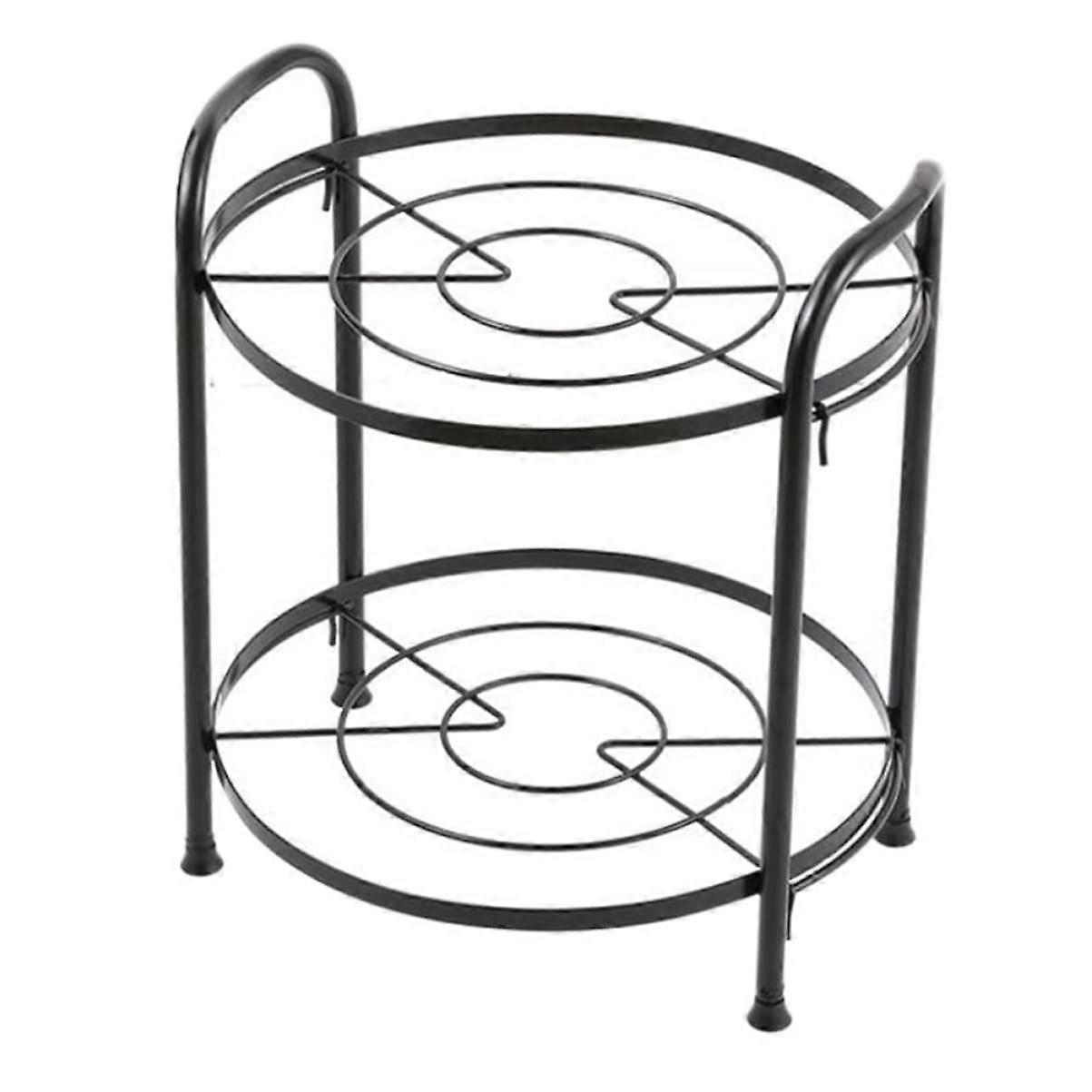 Iron construction for strength and durability, ensuring longlasting use in any kitchen setting. Convenient twolayer pot rack with four adjustable leg pads designed to protect your floor from scratches while keeping the unit stable. Ideal for safely storing and organizing pots, pans, and kitchen essentials without clutter. Optimizes kitchen organization by displaying cookware neatly and efficiently, helping extend your usable cabinet space. for homeowners who need extra storage without the expense or hassle of installing cupboards. Raisededge design provides added protection, preventing pots and pans from slipping or falling during storage. This feature ensures safety while keeping your cookware secure and within easy reach. Spacious twolevel shelf offers ample storage for multiple pots or pans, making it suitable for various kitchen sizes and layouts. Compatible with most standard cookware shapes and sizes. Practical applications include: Home kitchens where cabinet space is limited, allowing quick access to frequently used cookware. Small apartments or shared living spaces where organized storage is essential for maximizing space. Catering or food service environments for efficient staging and easy access during meal preparation. Functional, durable, and easy to maintain, this iron pot rack is a reliable solution for keeping your kitchen organized while protecting your floors and cookware.
