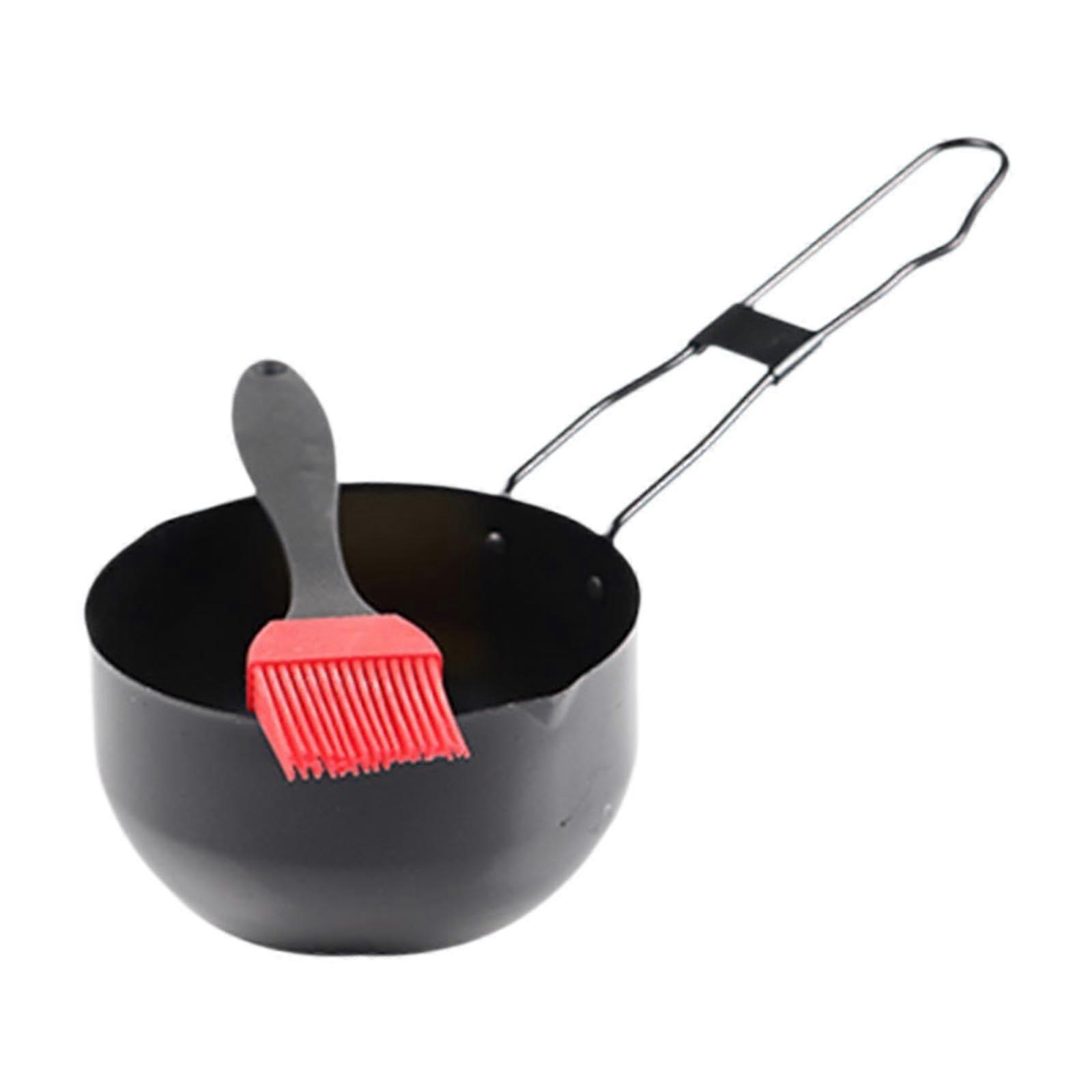 Oil Dispenser with Brush Heat Resistant Metal BBQ Oil Bowl for Outdoor Cooking and Grilling