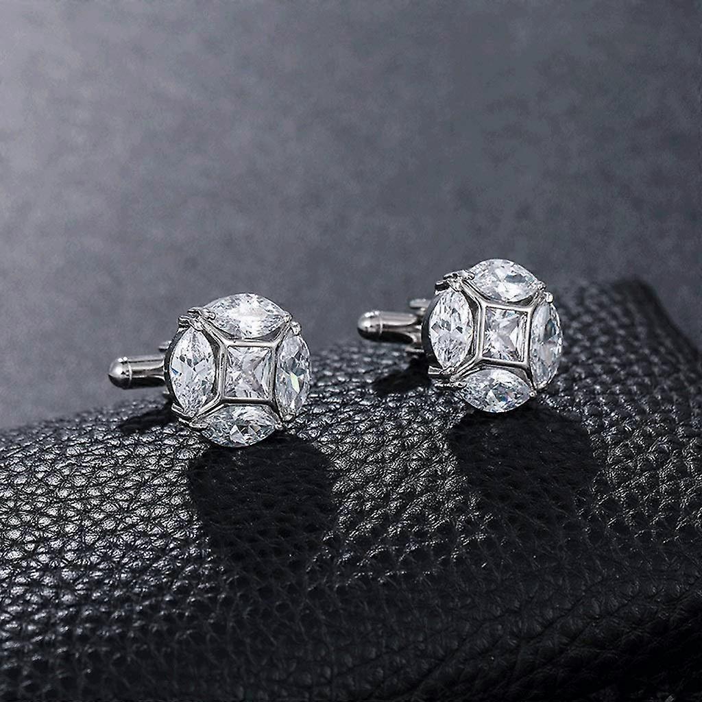 Men's Luxury Round Marquise CZ Cufflinks Platinum Filled Elegant Wedding Jewelry