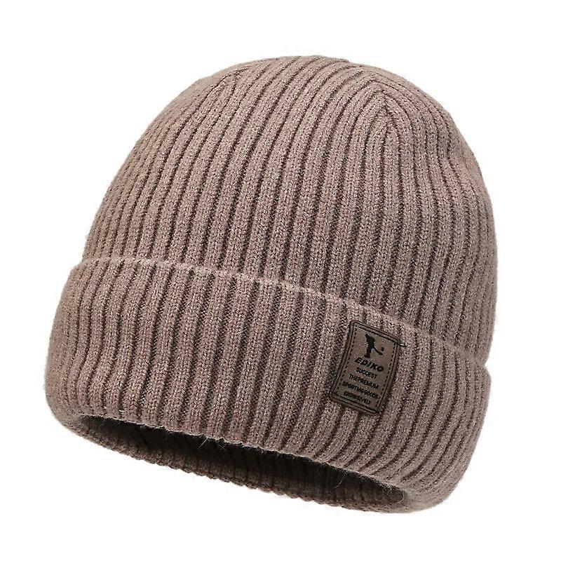 1Pc Winter Warm Beanie Knitted Cap Large Brim,solid Color, Versatile Unisex Style,plush Lining For Winter,suitable For Adults