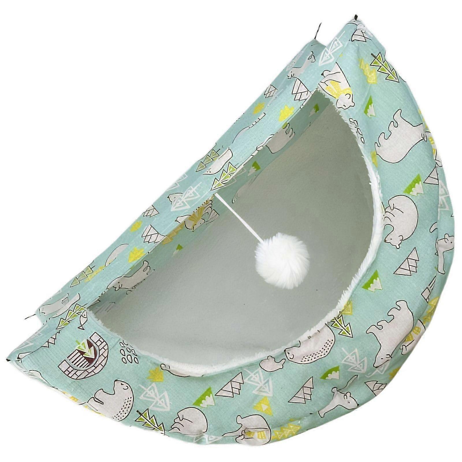 Cat Hammock with Toy, Cozy Soft Interior, Secure Cage Mounting, Green Hanging Cat Bed