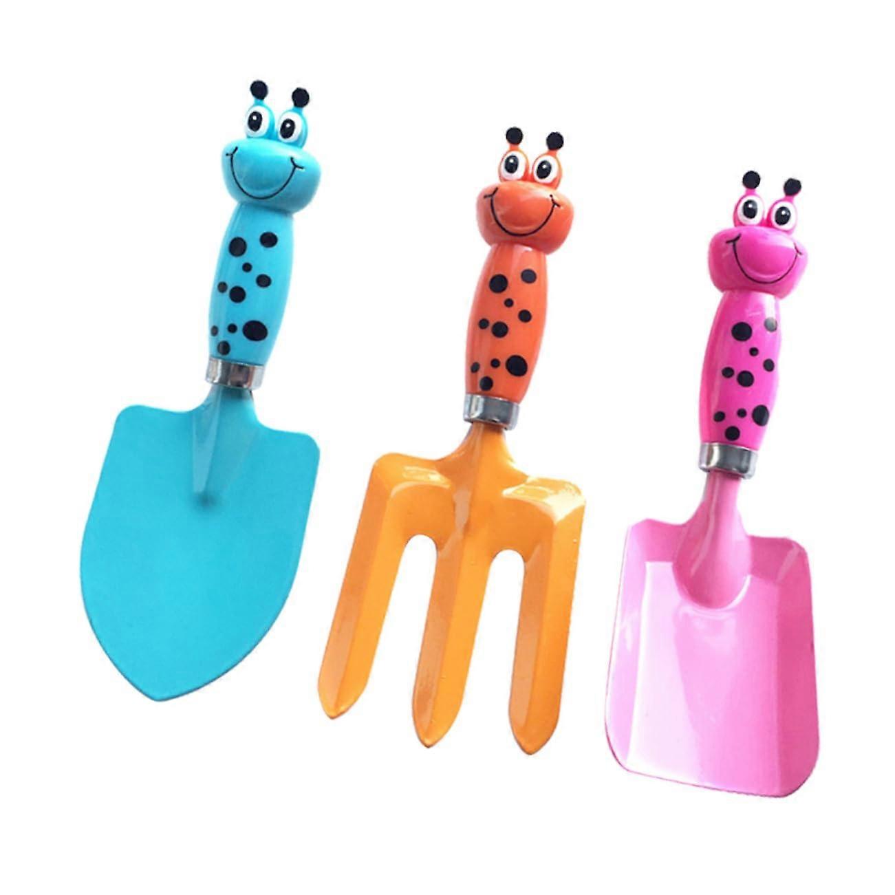Kids Gardening Tools Set with Shovel Rake Hoe and Ergonomic Cartoon Handles for Outdoor Play
