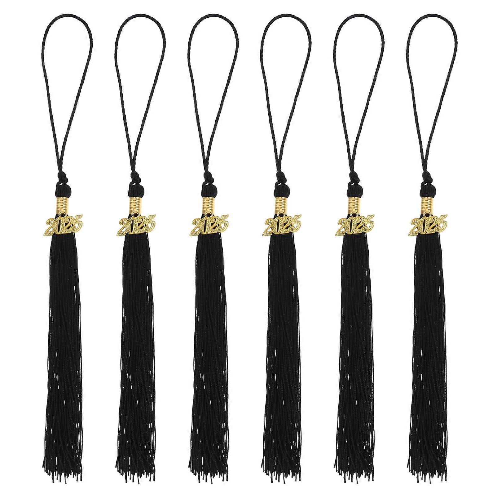 6pcs Black Graduation Tassel Charms Durable Polyester for Easy Cap Attachment and Ceremony Decor
