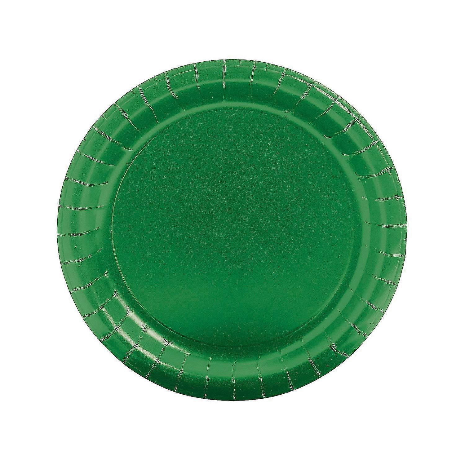 Green Paper Plates 24 Pack, Sturdy Round Disposable Party Plates for Birthdays and Weddings