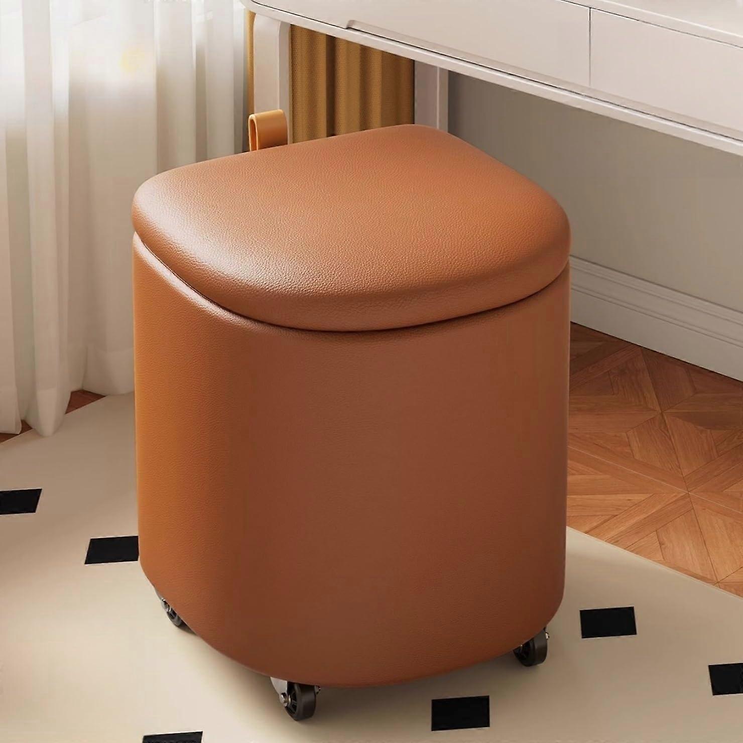 Plush comfort, smart storage, and smooth mobility — designed to solve everyday clutter and seating needs Key benefits Comfortable seating: Thick density foam padding and a quality leather finish deliver soft, supportive seating for daily use. Built to last: A sturdy wooden frame provides reliable stability and longterm durability. Saves space and reduces clutter: A hidden storage compartment under the cushioned keeps cosmetics, accessories, magazines, and small items organized and out of sight. Easy to move and position: Smoothgliding universal casters provide effortless 360° mobility for quick repositioning and cleaning. What makes it stand out DShape design with rounded edges offers a modern, versatile look that complements living rooms, bedrooms, dressing areas, and offices. Multifunctionality: Use as a vanity stool, footrest, extra seating, or a decorative piece without sacrificing comfort or stability. Practical materials: quality leather finish for a refined appearance, thick foam for comfort, and a solid wooden frame for dependable support. Features at a glance Upholstery: quality leather finish Cushioning: Thick density foam padding for softness Frame: Sturdy wooden construction for longlasting stability Mobility: Universal casters for smooth 360° movement Storage: Liftoff cushioned revealing a spacious hidden compartment Practical use scenarios Morning makeup routine: Roll up to your vanity, sit comfortably on the padded seat, and store cosmetics and brushes inside for a tidy workspace. Living room convenience: Use as a footrest or extra seat for guests; hide magazines, remotes, or throws inside when not in use. Home office or bedroom: Keep small accessories, chargers, or paperwork organized while maintaining a compact, stylish footprint. Care and compatibility Compatible with daily home use in living rooms, bedrooms, dressing areas, and offices. Wipe the leather finish clean with a damp cloth; inspect casters and wooden frame periodically for secure attachment and smooth operation.