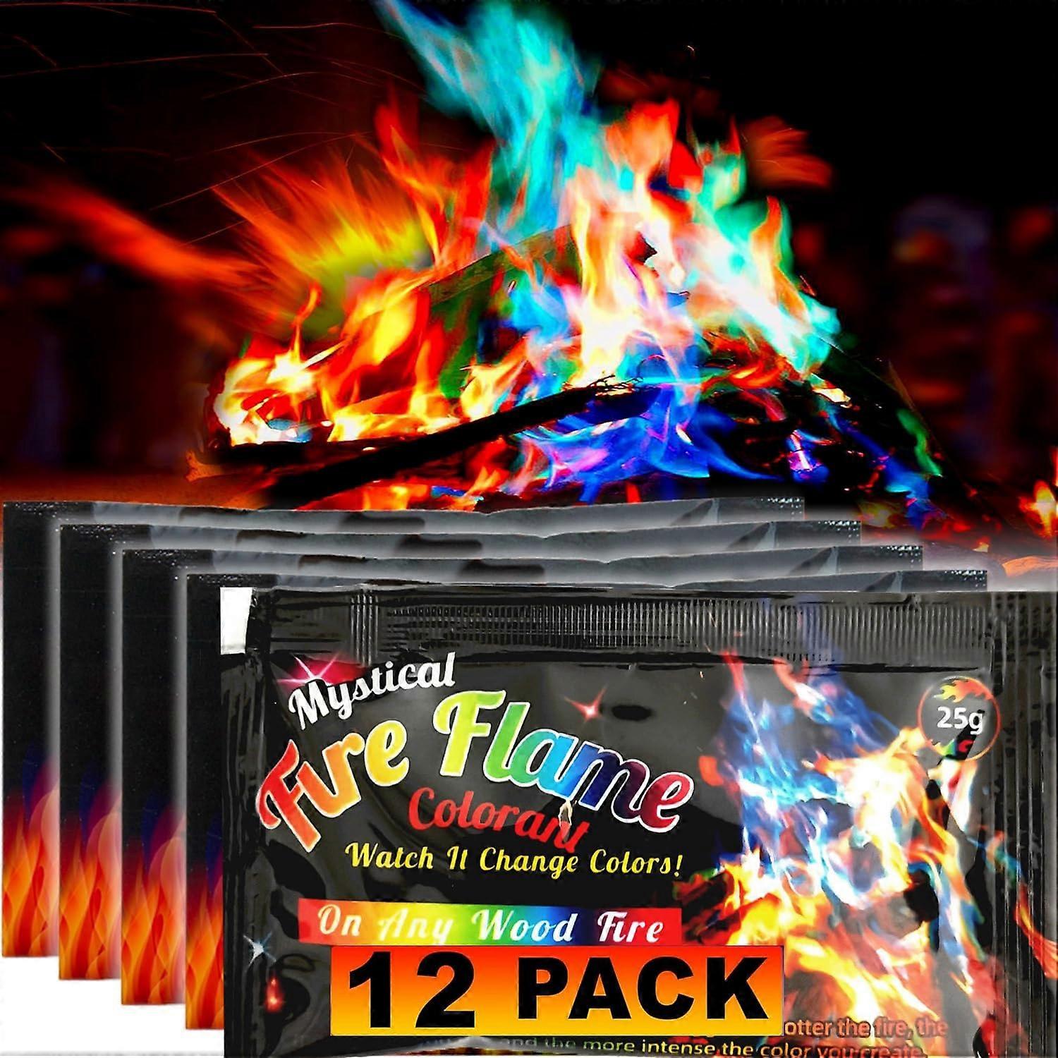 12 Pack Magic Fire Color Packets for Vibrant Rainbow Flames Indoor Outdoor Fireplace Campfire