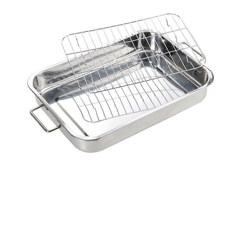 Stainless Steel Roasting Pan with Rack, Large Capacity Oven Safe with Handles, 42x32x6.5cm