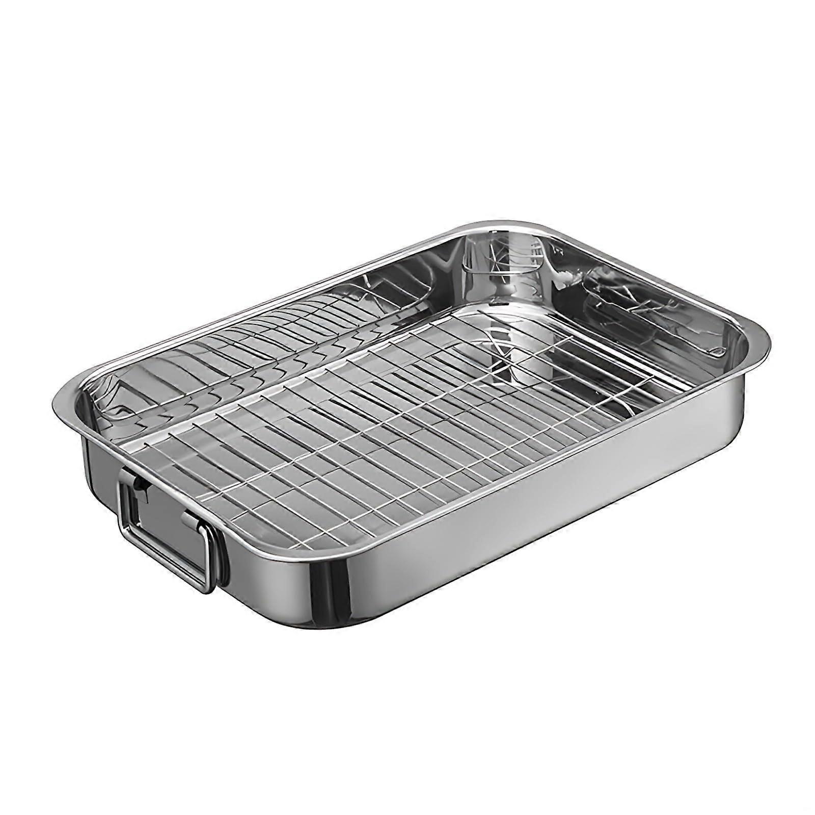 Large Stainless Steel Roasting Pan 16.5in with Wide Handles, Even Heat for Turkey and Chicken