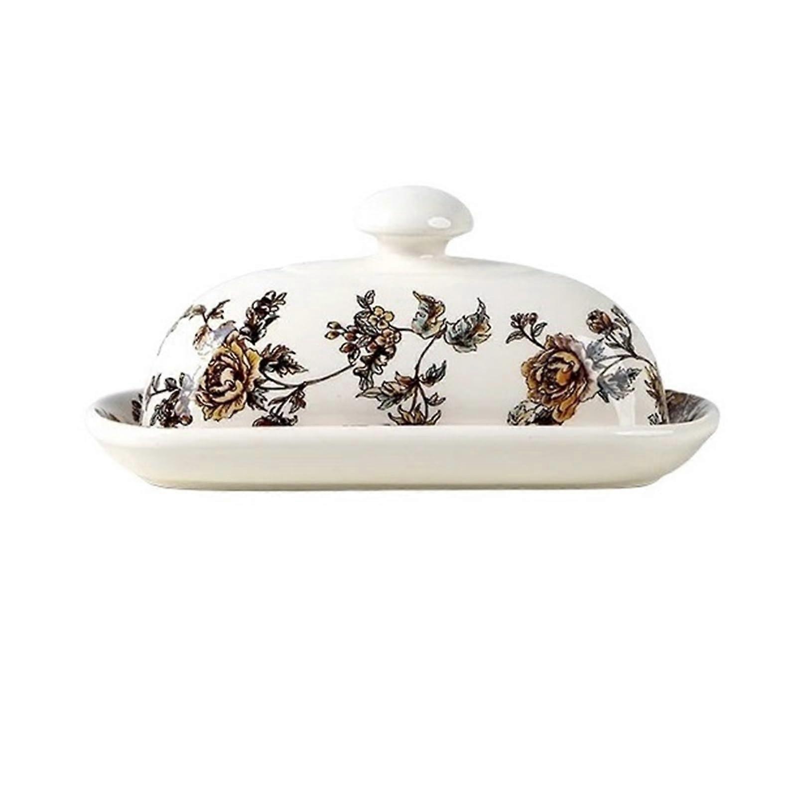 Butter Dish Classic White Porcelain with Lid and Knob Handle for Fresh Countertop Storage