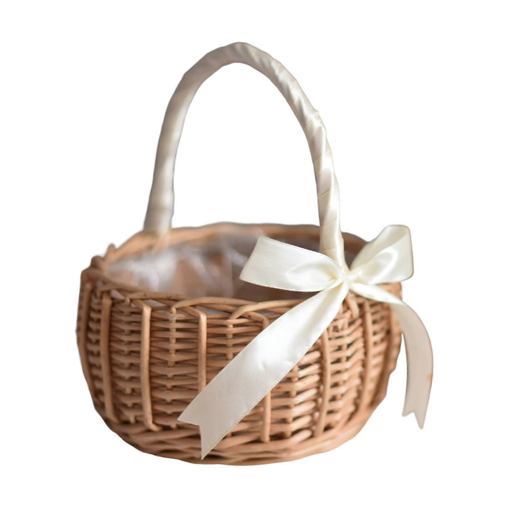 White Woven Willow Flower Girl Basket with Handle for Rustic Wedding Decor and DIY Arrangements
