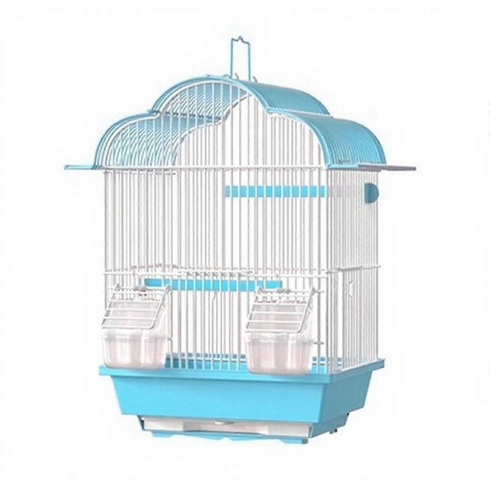 Blue Hanging Parrot Cage with Stand and Food Cup for Cockatoos Lovebirds Macaw Budgies