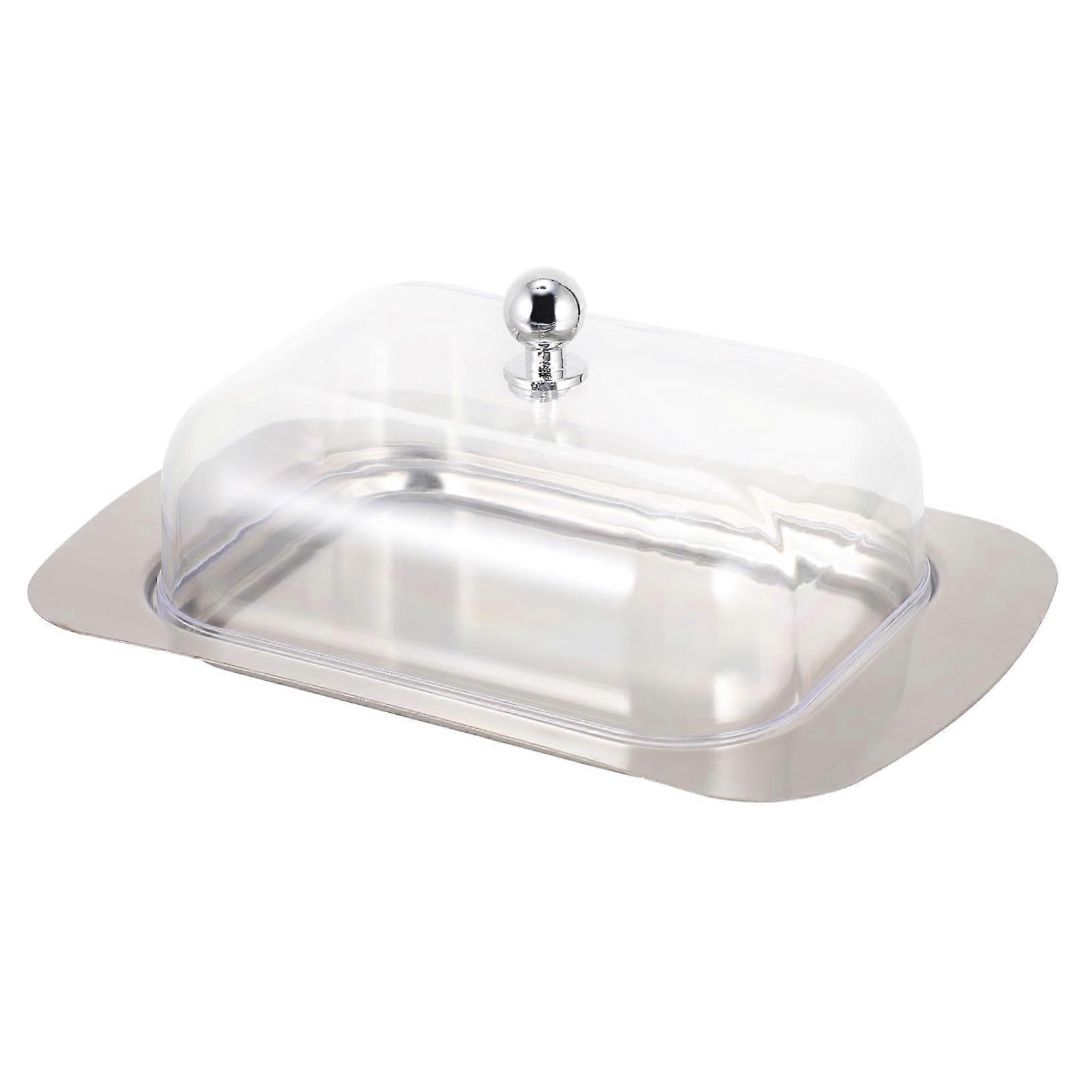 Stainless Steel Butter Dish with Clear Lid Keeps Butter Fresh Elegant Countertop and Refrigerator Use