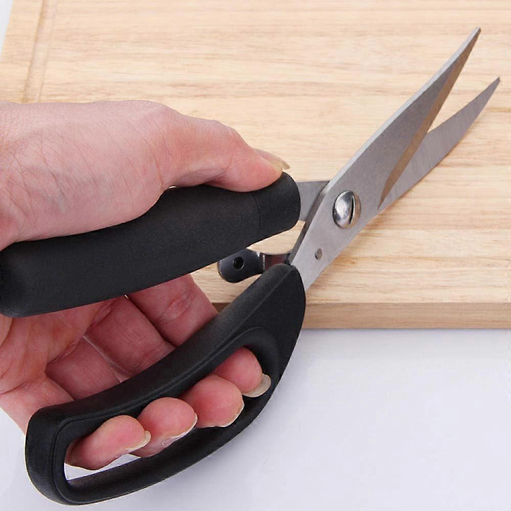 Suitable for raw, cooked, or fried poultry; use poultry shears to portion poultry. Multipurpose Kitchen Scissors: a multifunctional tool that improves food prep efficiency by reducing the need to switch between tools. They cut bones and raw meat, scrape fish scales, chop vegetables, peel fruits, and open bottles. Secure nonslip handle: ergonomic softplastic handles provide a secure grip. The coated handle stays comfortable and helps maintain grip when hands are wet, and can help reduce thumb strain. With a hanghole design, you can store the poultry scissors safely out of reach of children. Easy to clean: made from heavyduty stainless steel for durability. The stainless steel construction resists rust after repeated use and washing, and its smooth surface helps prevent sticking, making thorough cleaning easier. The blades open wide to allow full cleaning when needed.