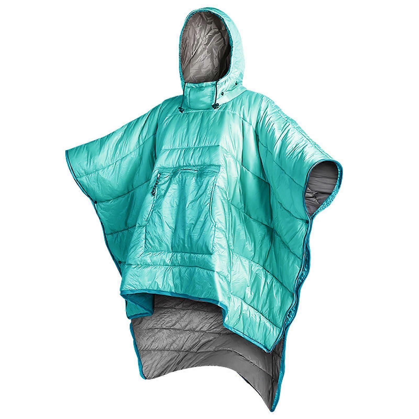 2 in 1 Camping Sleeping Bag Cloak, Windproof Warm Poncho with Large Front Pocket, Green 200x140cm