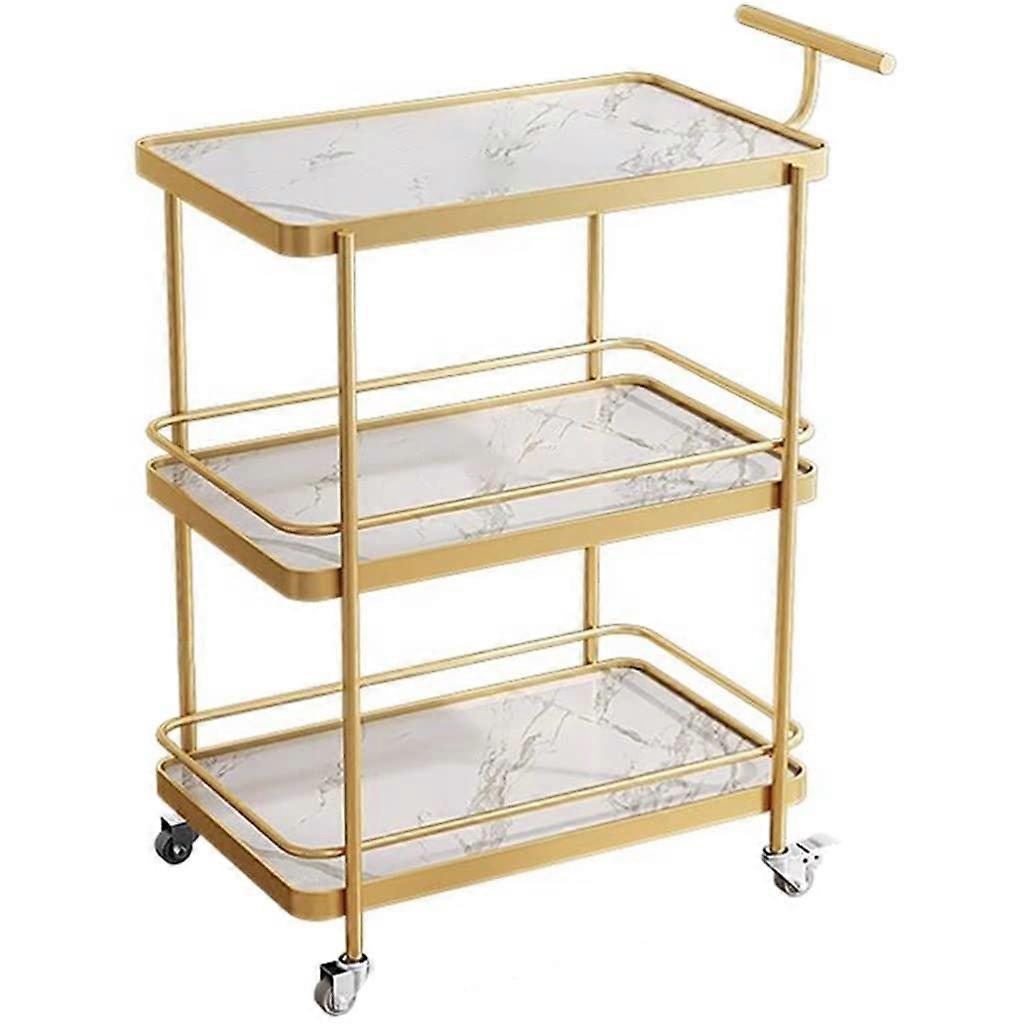 Luxury 3Tier White and Gold Bar Cart with Wheels, Wrought Iron Serving Cart for Hotel Dining