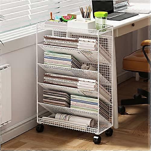 Metal Rolling Bookshelf 6Tier Heavy Duty Storage Rack with Lockable Wheels Adjustable Shelves