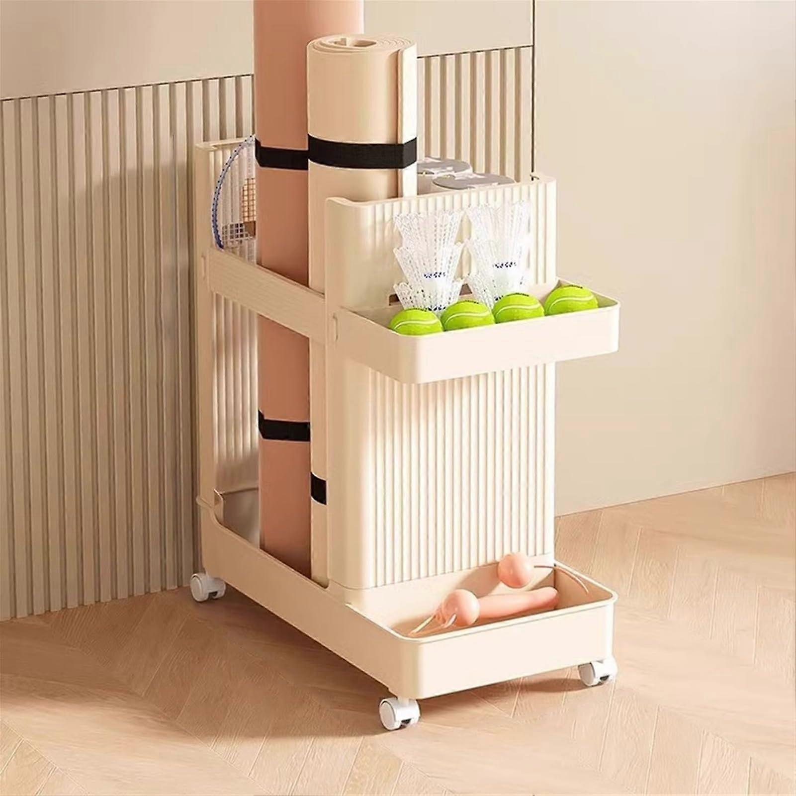 Utility Cart with Wheels, 2Tier Gym Storage Rack for Workout Gear, SpaceSaving Organizer Cream