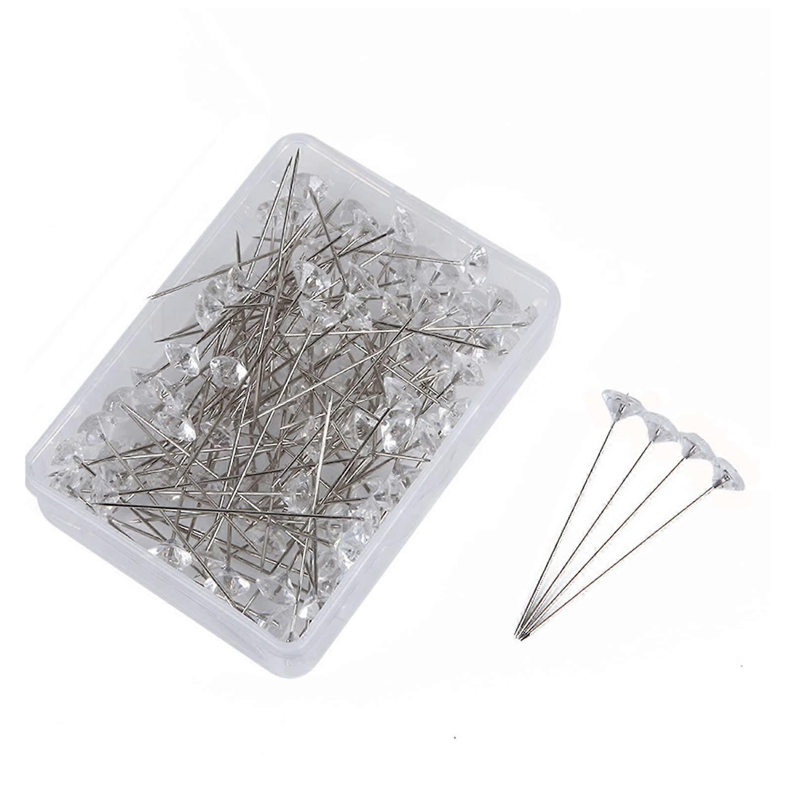 Wedding Bouquet Pins with Clear Crystal Decorative Head, Long Straight Corsage Pins for Flower Arrangements