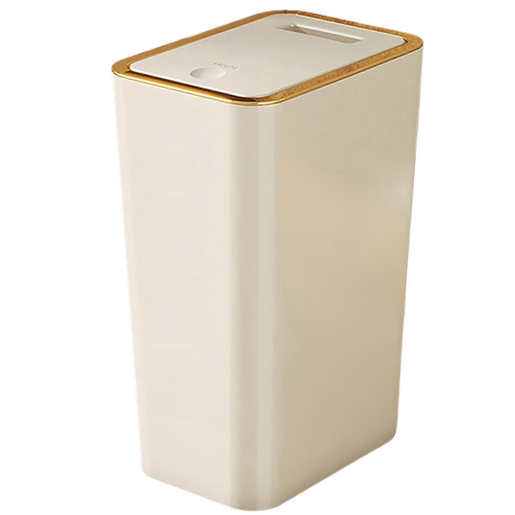 Slim 10L Trash Can with OdorSealing Press Lid, Waterproof PP Bin for Kitchen and Bedroom, Cream