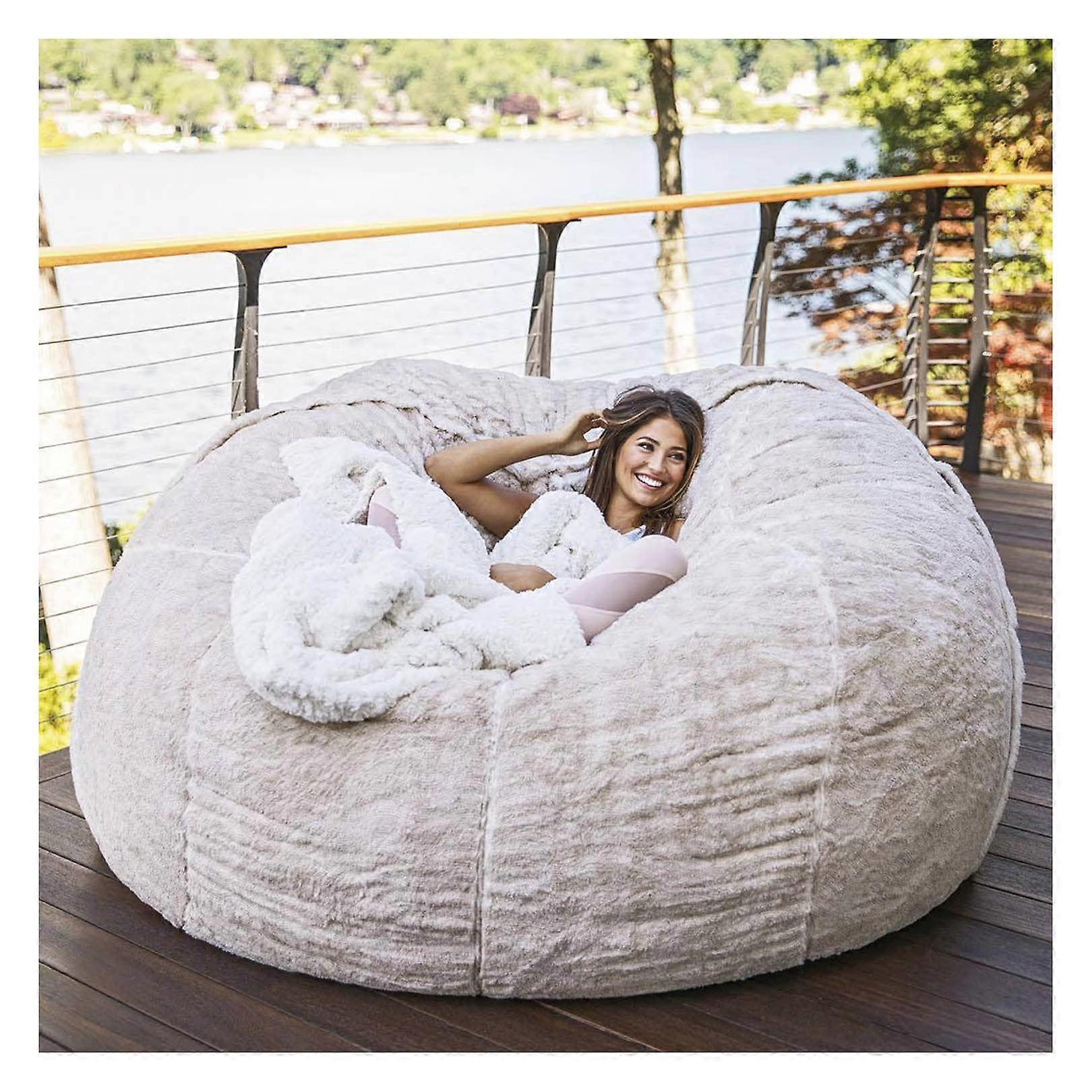 Giant Faux Fur Bean Bag Chair Cover for Adults, Soft Fluffy Sofa Bed, Removable Washable, 180x90cm