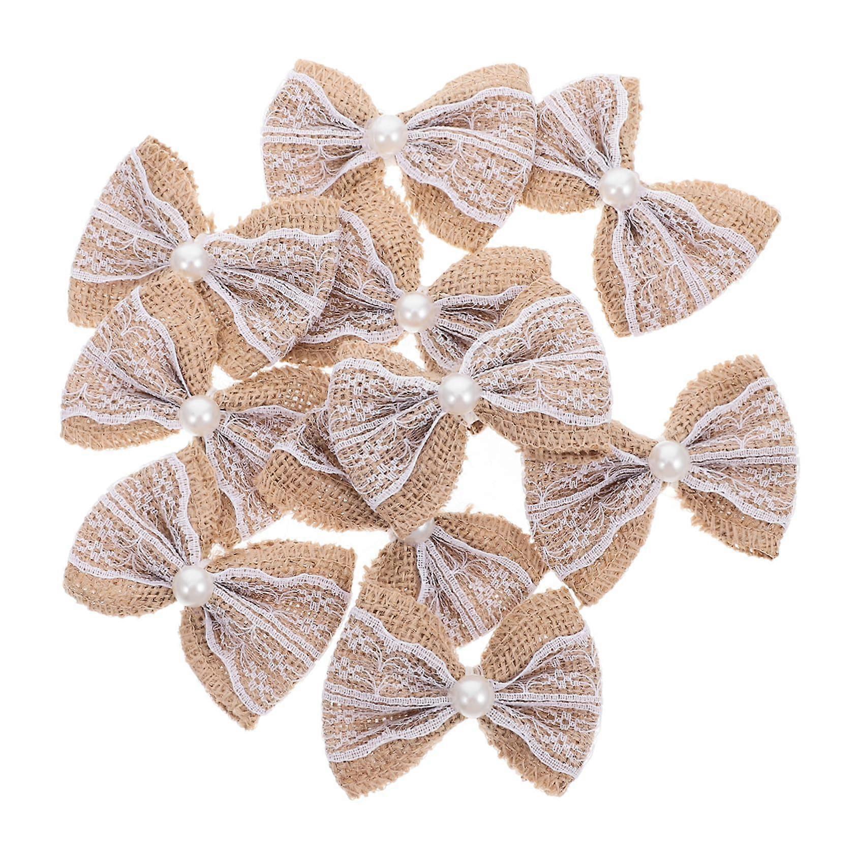 10pcs Lace Burlap Ribbon Bows Handmade Vintage Design for Wedding Invitations and Gift Wrapping