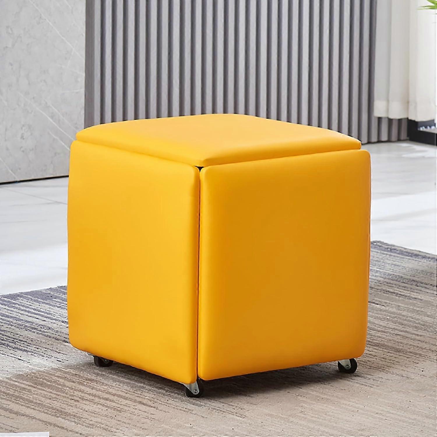 5in1 Nesting Ottoman Cube Stool PU Leather Footstool with Casters for Living Room 14x14x15 Inch