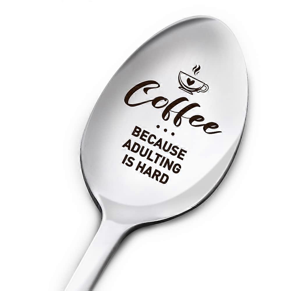 Funny Coffee Lover Spoon with Engraved Inspirational Message, Stainless Steel Gift for Birthday Christmas