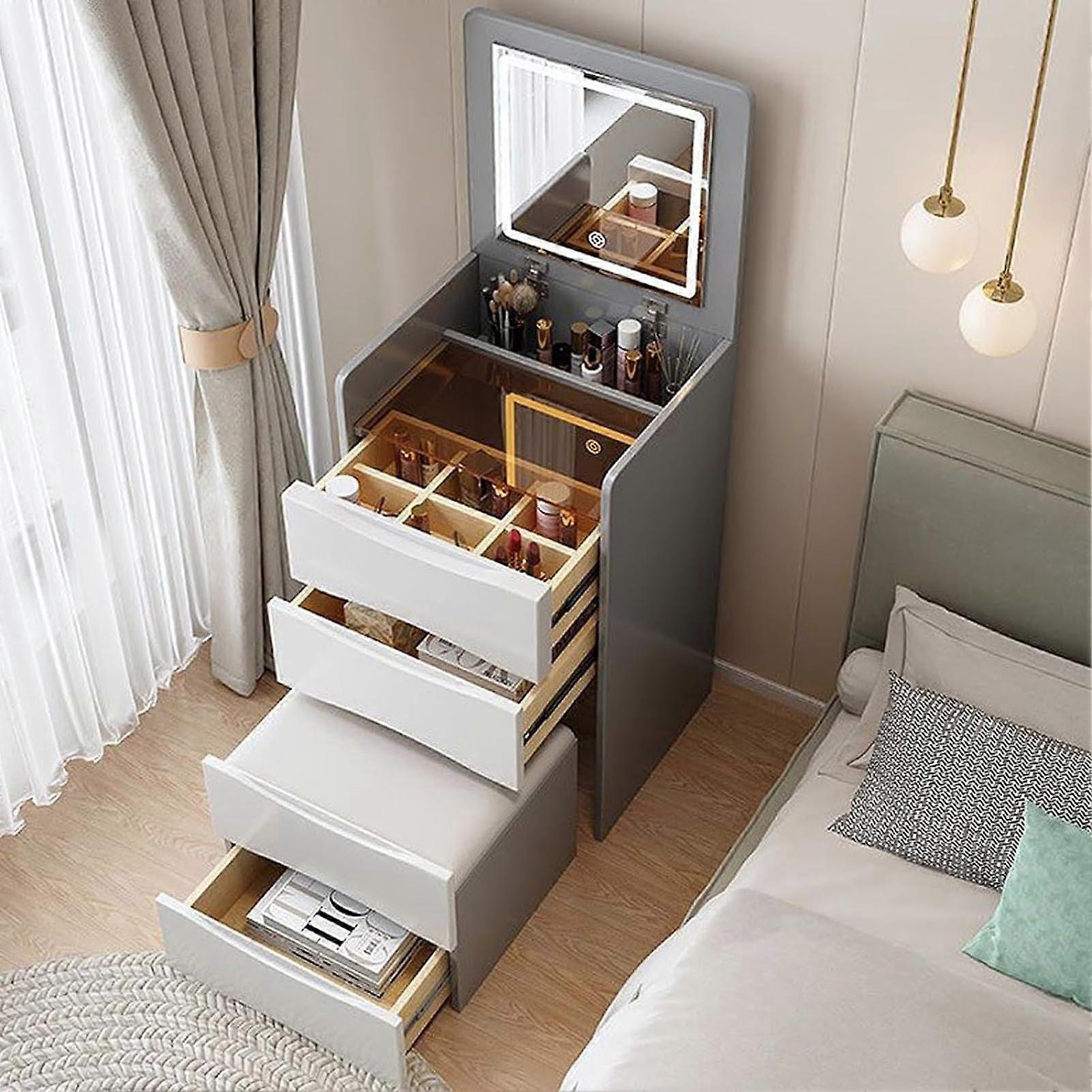 Vanity Table with Mirror and 3Color LED Lights, Drawers, Removable Cushioned Stool, Grey 48x40x80cm
