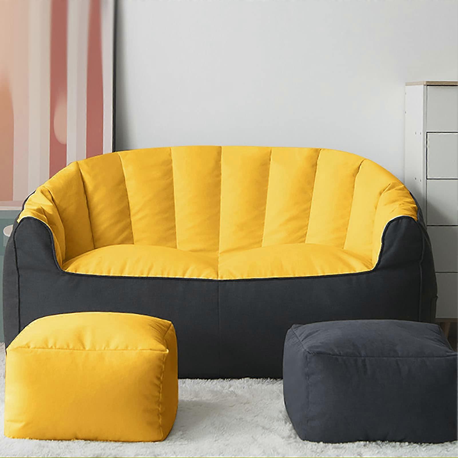 Oversized Bean Bag Sofa with Breathable Soft Fabric for Living Room and Bedroom, Yellow and Grey