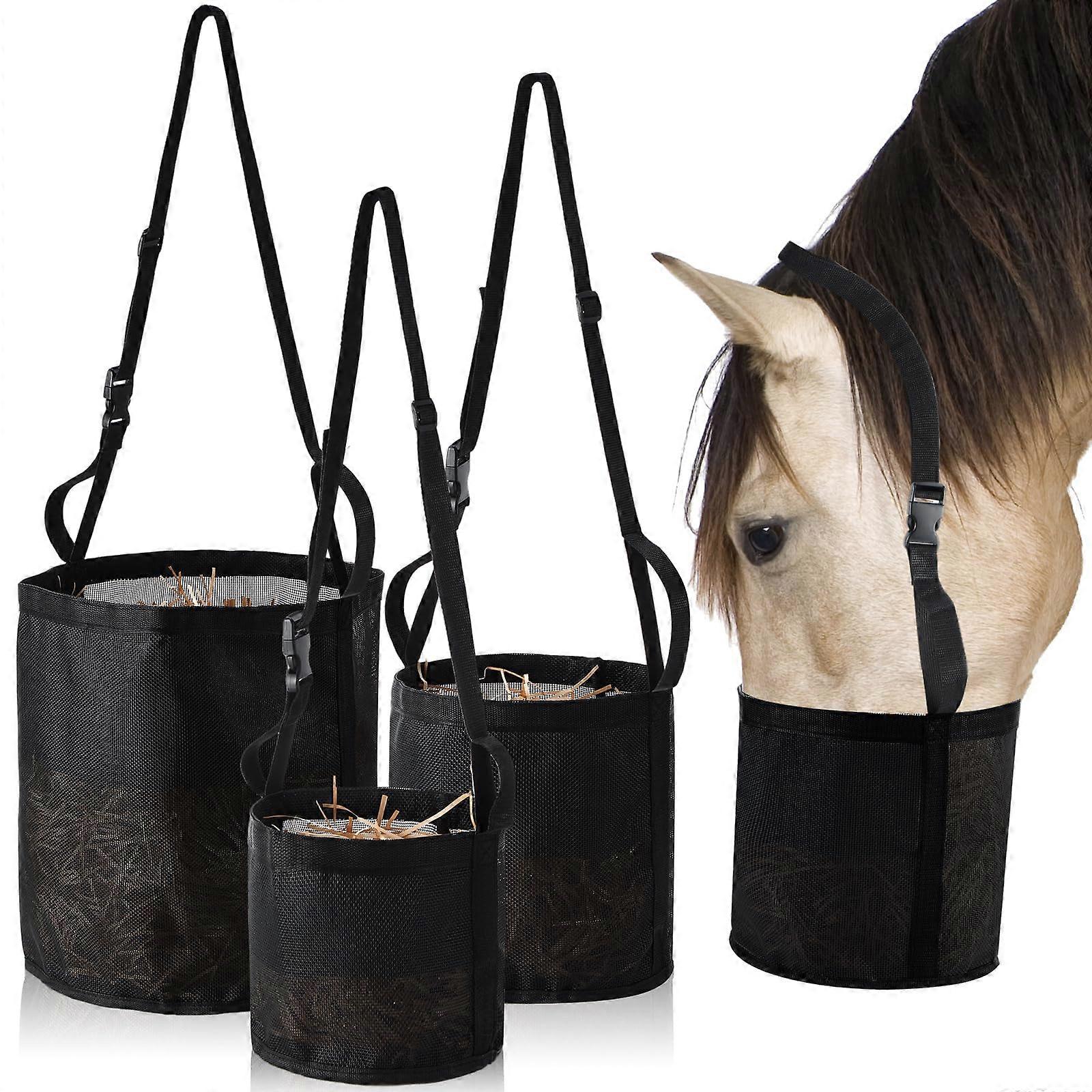 3 Pcs Heavy Duty Mesh Horse Feed Bag with Adjustable Strap and Waterproof Bottom, Black, 3 Sizes
