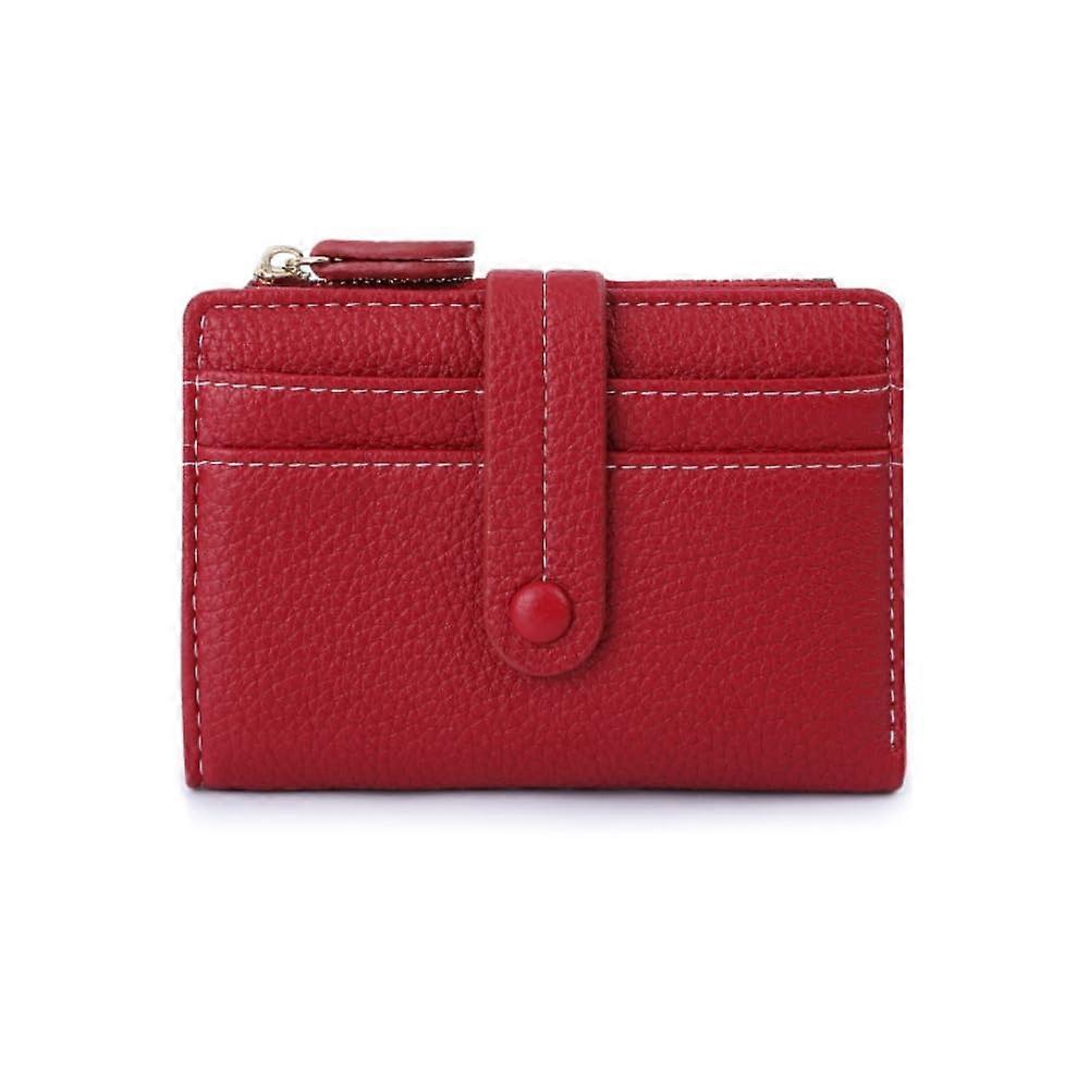 Women's PU Leather Short Wallet with Zipper, Large Capacity Card Holder Coin Purse Red