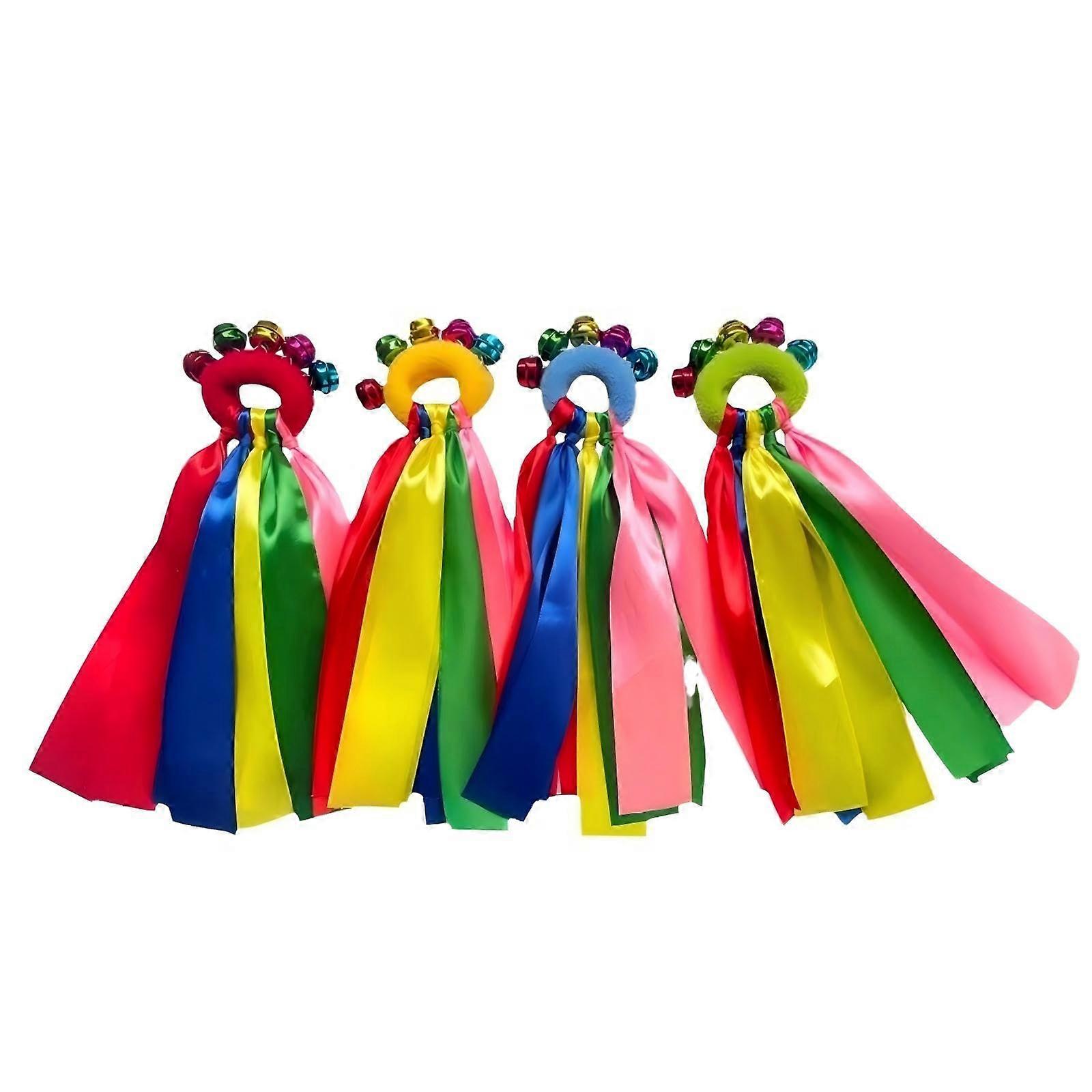 Colorful Jingle Bell Dance Wristbands with Rainbow Ribbons, Adjustable Fit, 4 Colors, 25cm