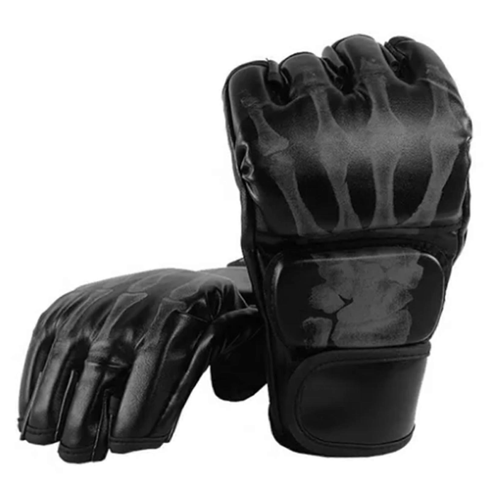 MMA Training Gloves PU Leather Half Finger with Open Palm Ergonomic Grip for Punch Bag Muay Thai