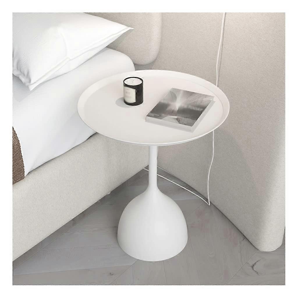 Round Metal Nightstand Modern White Bedside Table for Bedroom Living Room Easy to Assemble