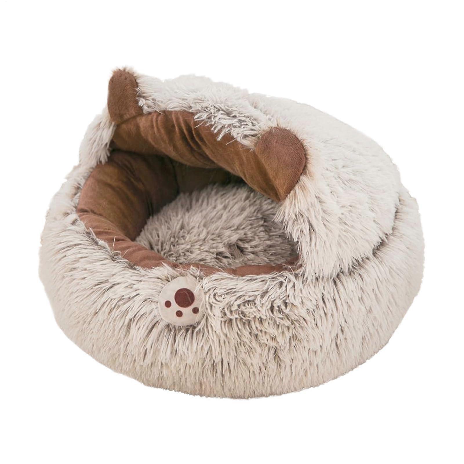 Cat Cave Bed for Indoor Cats with SemiEnclosed Dome, Plush Calming Pet Bed, Brown 40CM