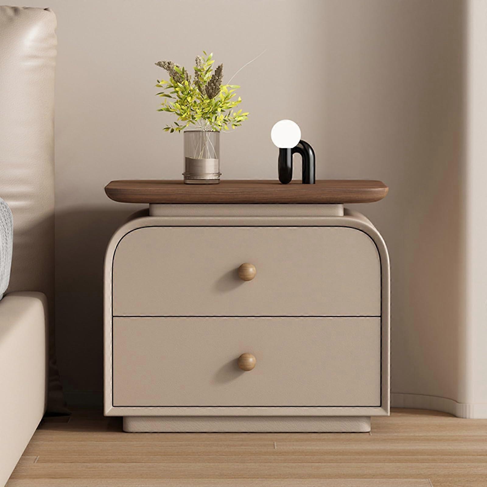 Solid Wood Nightstand with Dual Drawers, Modern Bedside Table for Bedroom and Living Room, Khaki 45x40x50cm
