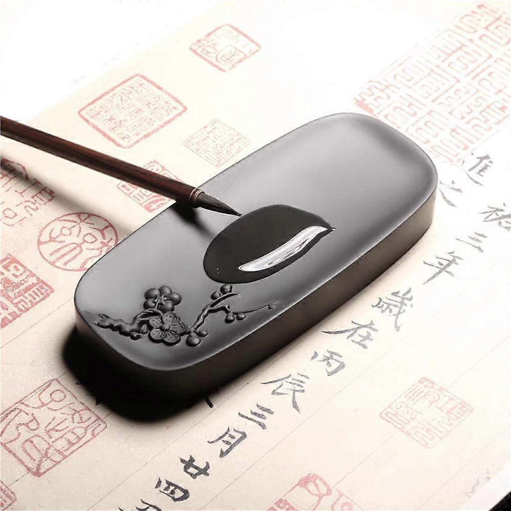 Chinese Inkstone Calligraphy Ink Plate Handcrafted Black Design for Small Kai Pen Painting