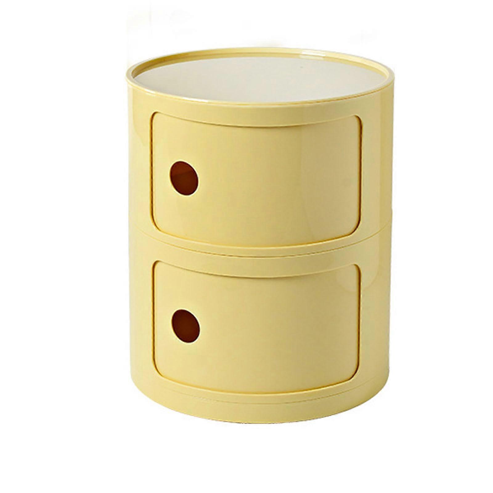 Round Bedside Table with Sliding Doors, Nordic Style Nightstand, Large Storage, Yellow