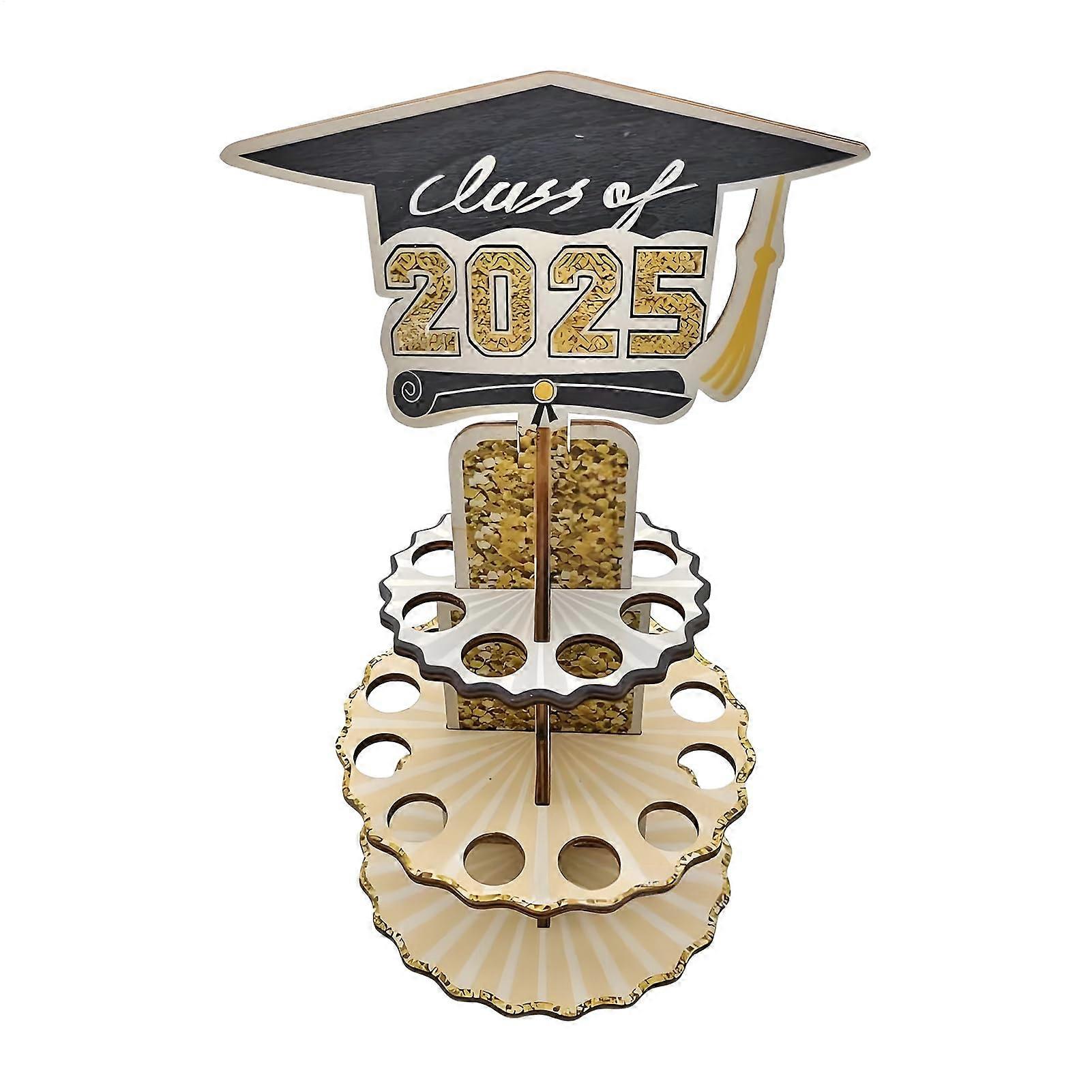 Graduation Cake Money Holder with 20 Holes, Double Layer Wooden Display for Party Decorations