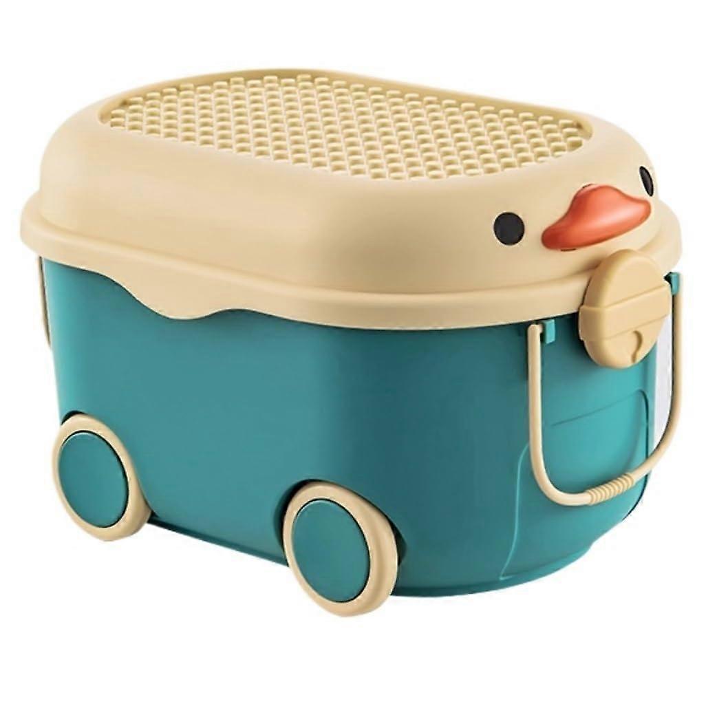 Large Plastic Toy Storage Bin with Wheels and Lid for Kids Playroom, 46x31x27cm