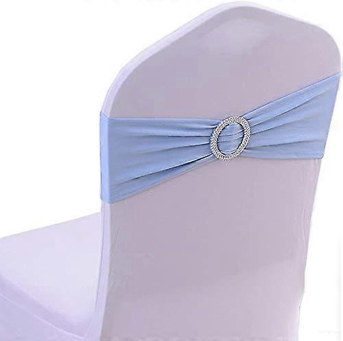 Light Blue Spandex Chair Sashes with Decorative Buckle for Wedding Banquet Party Chairs, 50 Pack