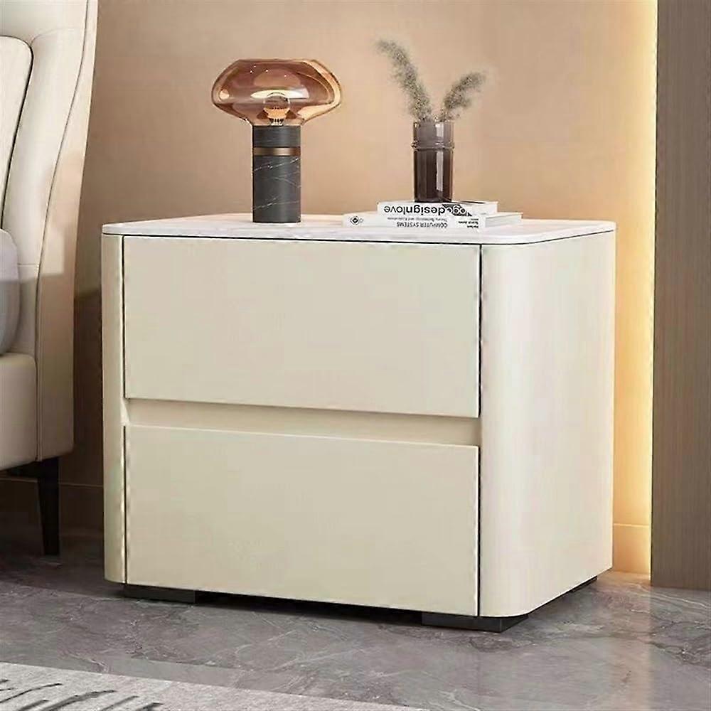 Modern Nightstand with Drawers, Solid Wood Bedside Table, Leather Finish, Brown or White 2 Sizes