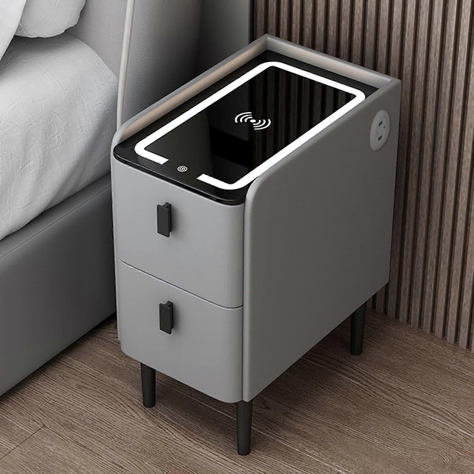 Temperedglass nightstand designed to reduce clutter, protect surfaces, and keep devices charged Key benefits Clean, durable surface: Tempered glass is scratchresistant and easy to wipe clean. Supports up to 35 lbs, so it holds lamps, books, alarm clocks or décor without worry. Builtin charging hub: Integrated wireless charging pad plus USB ports let you charge phones and tablets overnight without hunting for adapters or creating cord clutter. Adjustable ambient lighting: 3color LED (warm, neutral, cool) with dimmable brightness provides a soft night light or reading light that you can set to suit the moment. Practical storage: Two roomy drawers provide accessible space for glasses, chargers, skincare or bedside essentials—no locks, just simple, quick access. Features and what they solve Tempered glass (scratchresistant, easy to clean): Protects against spills and rings from cups, keeps the surface looking , and supports heavier items up to 35 lbs. Wireless charging pad + USB ports: Keeps multiple devices powered and organized on the nightstand so you can charge phones and tablets without a tangle of cords. 3color, dimmable LED lighting (warm/cool/neutral): Provides gentle illumination for nighttime trips or focused light for reading without needing an extra lamp. Two drawers with easy access: Hides clutter and keeps frequently used items within reach to maintain a tidy bedside or living room setup. Compatibility and performance Charging compatibility: Wireless pad for Qienabled phones and USB ports for phones and tablets. Keeps devices available and charged for daily use. Load capacity: Tempered glass supports up to 35 lbs—suitable for lamps, books, alarm clocks, or multiple small devices. Maintenance: Glass surface wipes clean quickly; drawers allow you to store items that otherwise crowd the tabletop. Use scenarios Bedside setup: Place a lamp and alarm clock on the glass , charge your phone and tablet overnight on the builtin wireless pad/USB ports, and keep glasses, chargers, and bedtime essentials in the drawers. Living room end table: Use as an end table for a lamp and remotes; charge a tablet between uses and store magazines or controllers in the drawers for a clutter surface. Guest room: Offer visitors a tidy, functional station with a light they can dim, an easy charging spot for phones and tablets, and drawers for items. What you get A sturdy, modern nightstand with a tempered glass , integrated wireless charging and USB ports, 3color dimmable LED lighting, and two easyaccess drawers—designed to simplify charging, lighting, and storage while keeping surfaces protected and organized.
