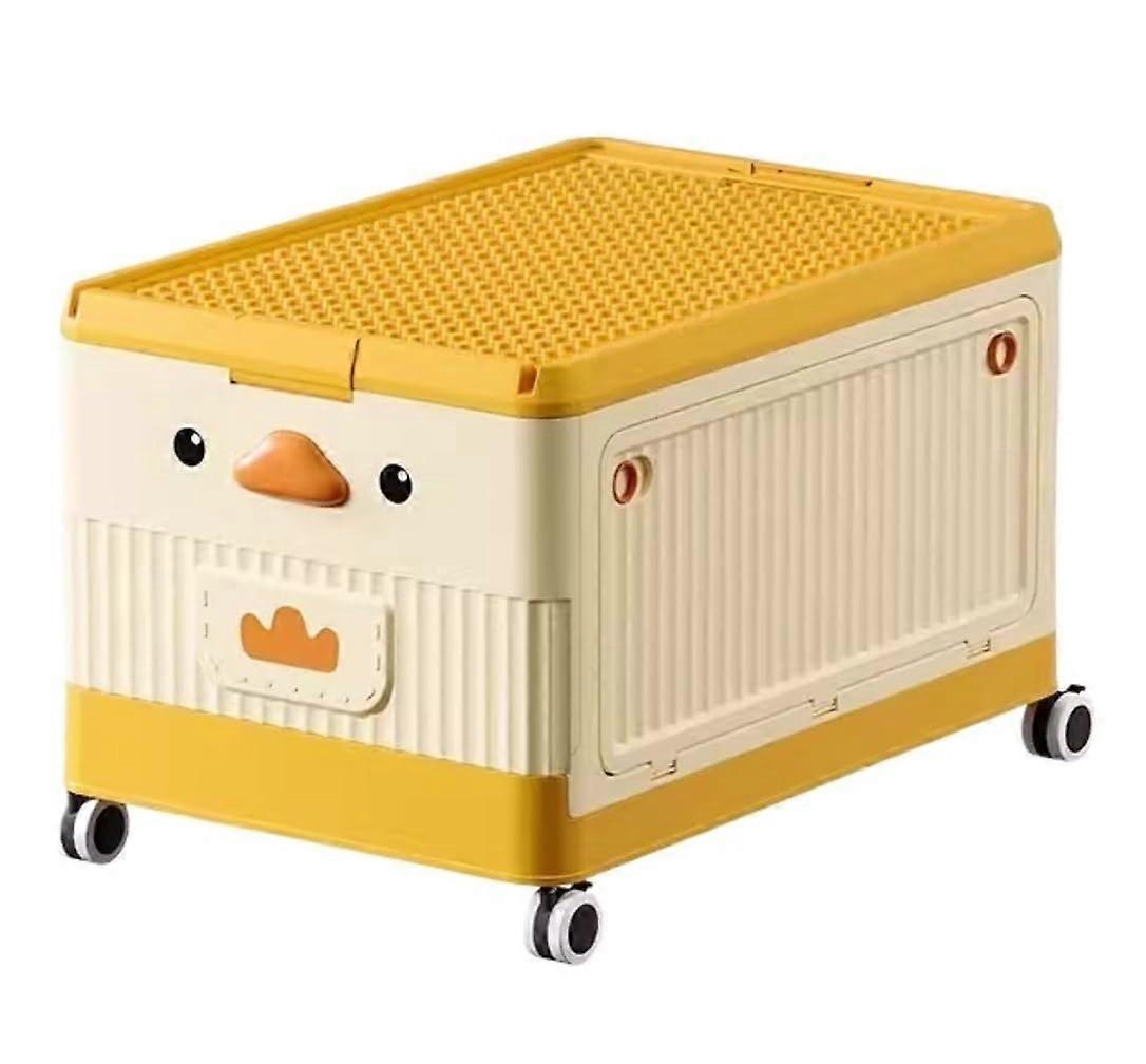Toy Storage Box with Wheels and Large Block Play Lid, Spacious Toy Organizer for Kids Room, Orange